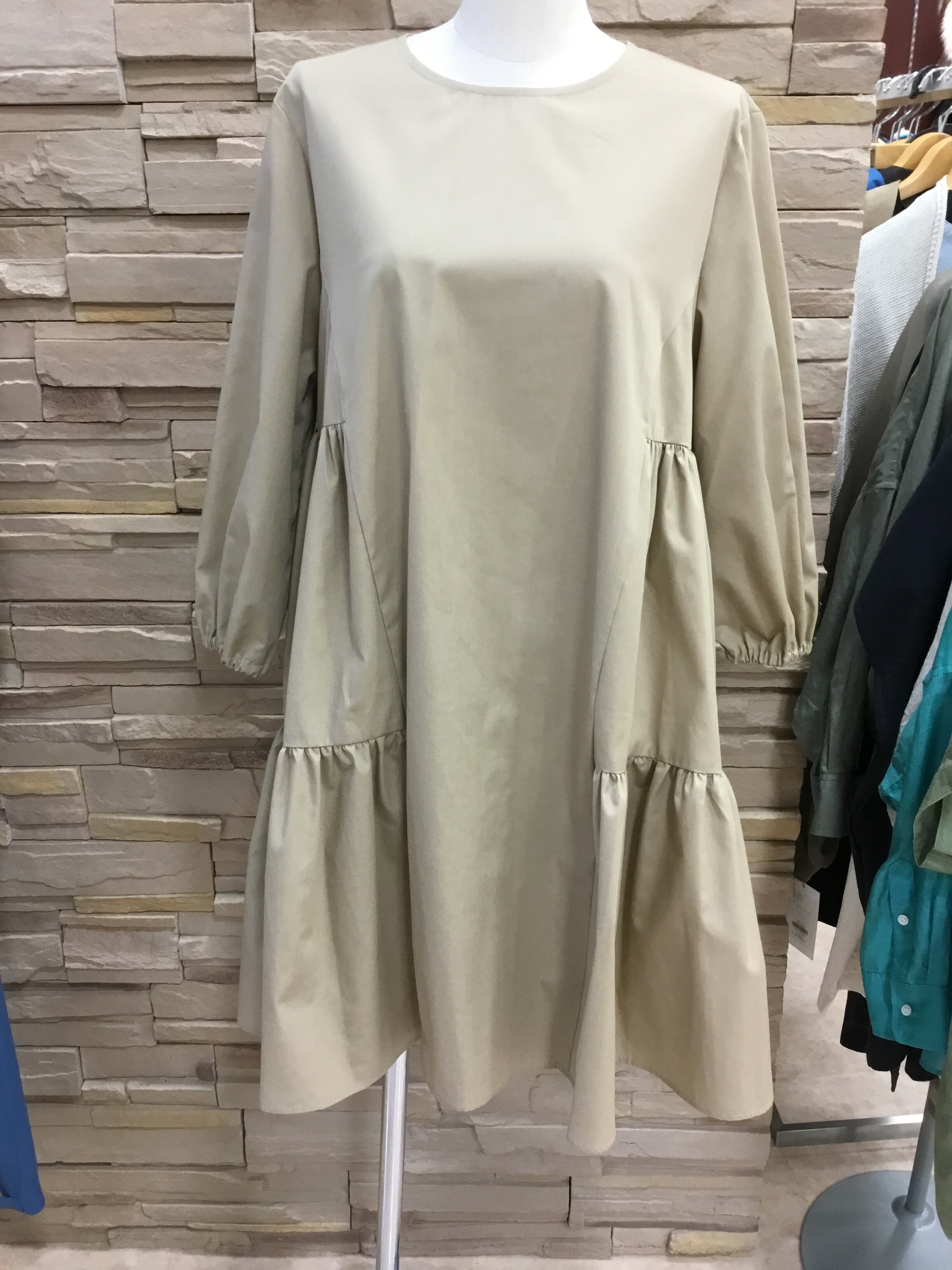デザイン性のあるチュニック丈のティアードブラウス。レイヤードしやすい丈でコーディネートを考えるのが楽しみなアイテム。身体のラインを拾わないAラインのシルエットも魅力です。